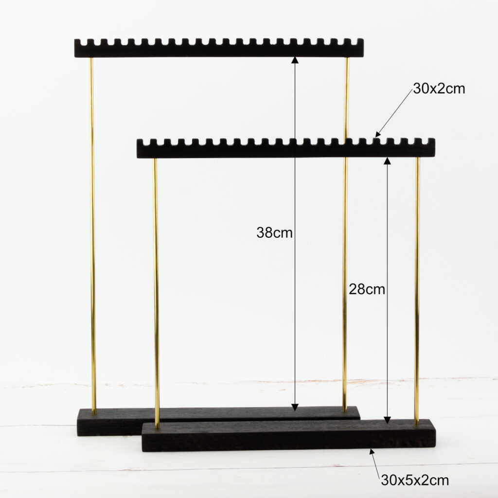 - Ekspozytor na łańcuszki wykonaliśmy z wysokiej jakości, wyselekcjonowano dębowego drewna w kolorze czarnym.