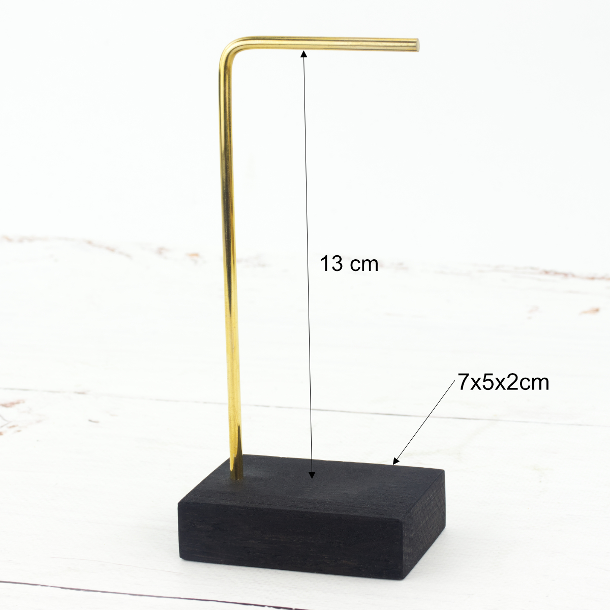To Twój stylowy i elegancki sposób na przechowywanie biżuterii w domu lub ekspozycję w butiku. Poznaj kompaktowy stojak o niezwykle prostej budowie, który zachwyca prostą formą i funkcjonalnością. Solidna podstawa wykonana z drewna dębowego to gwarancja stabilności a delikatny i jednocześnie mocny stelaż z mosiądzu zapewnia optymalną przestrzeń do przechowywania nawet dwóch par kolczyków lub kilku bransoletek.