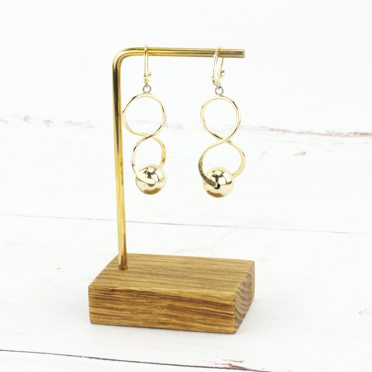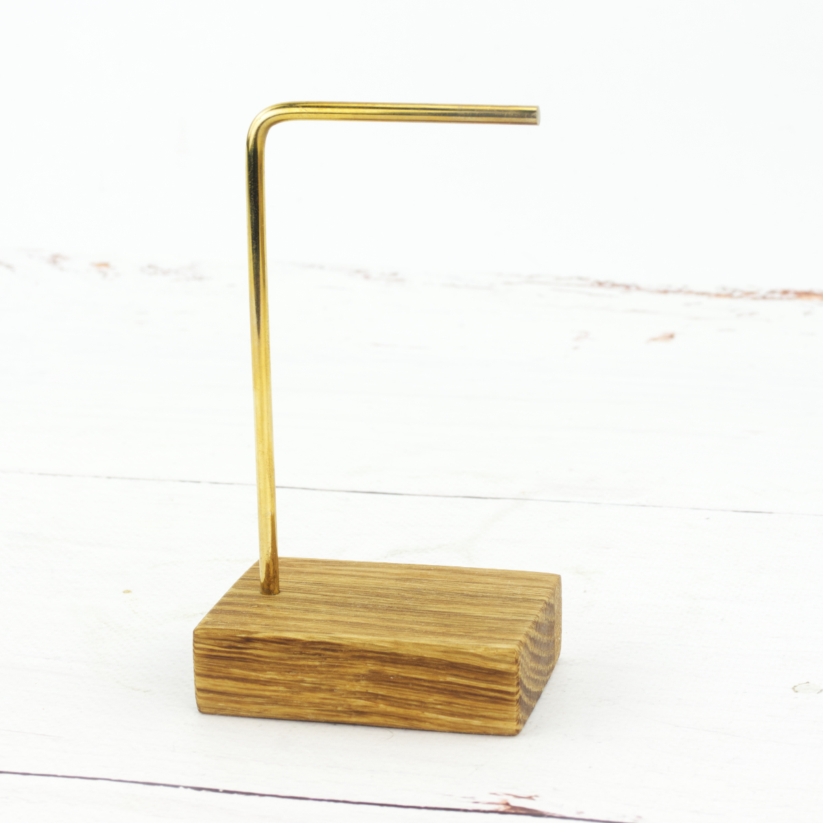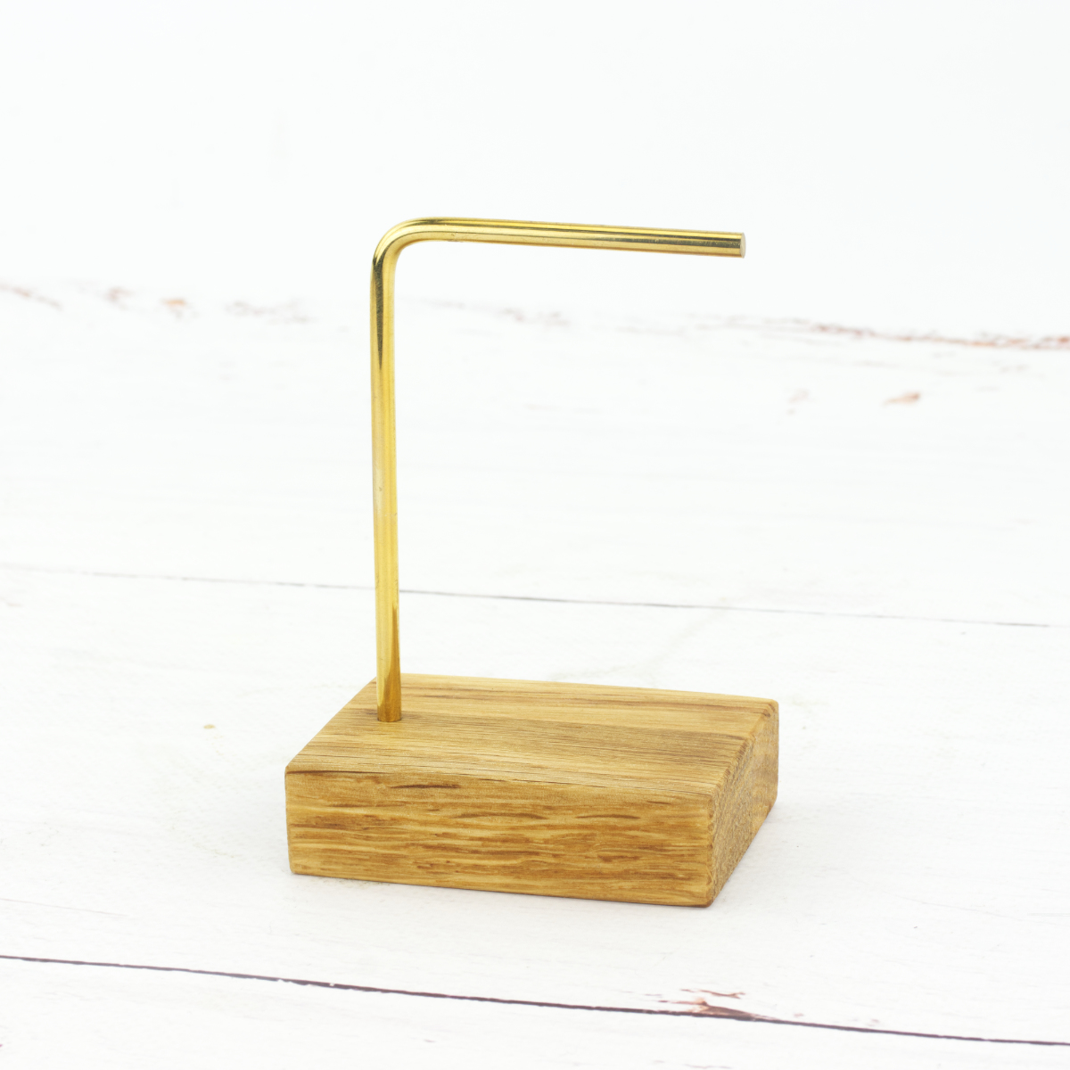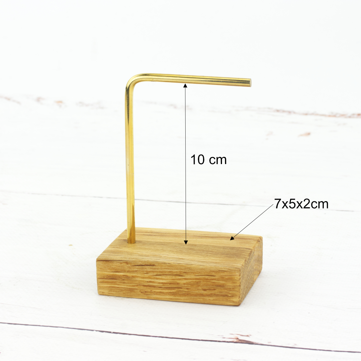 To Twój stylowy i elegancki sposób na przechowywanie biżuterii w domu lub ekspozycję w butiku. Poznaj kompaktowy stojak o niezwykle prostej budowie, który zachwyca prostą formą i funkcjonalnością. Solidna podstawa wykonana z drewna dębowego to gwarancja stabilności a delikatny i jednocześnie mocny stelaż z mosiądzu zapewnia optymalną przestrzeń do przechowywania nawet dwóch par kolczyków lub kilku bransoletek.