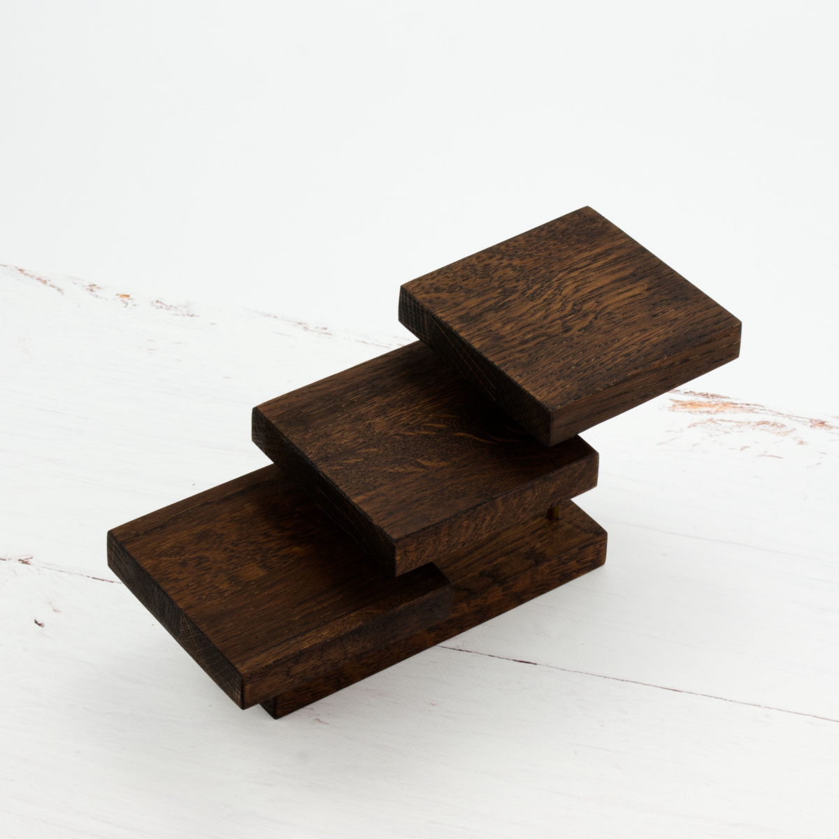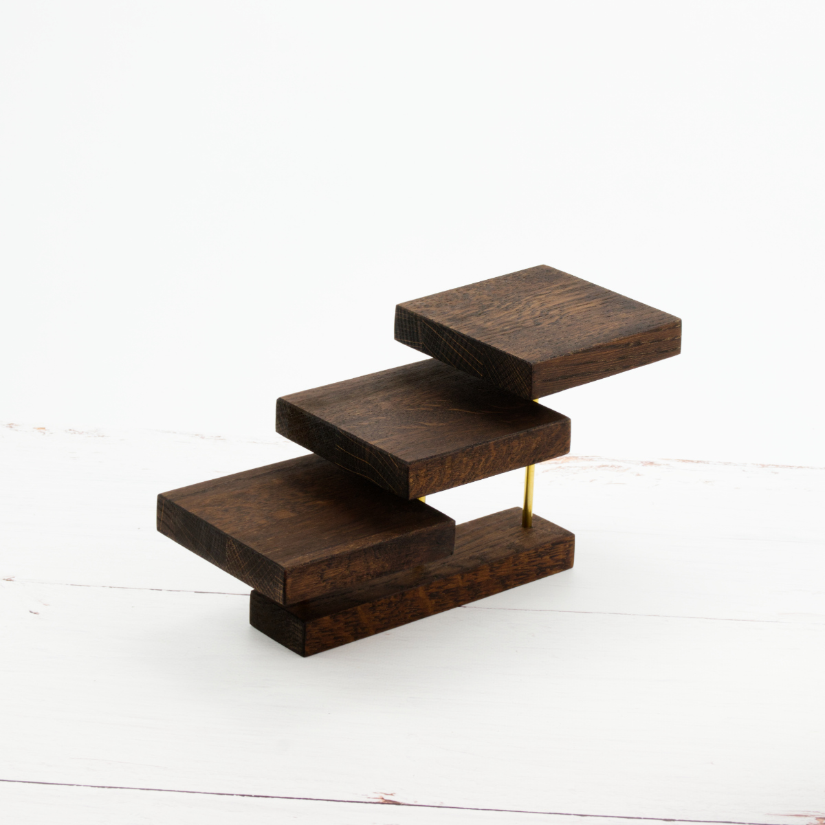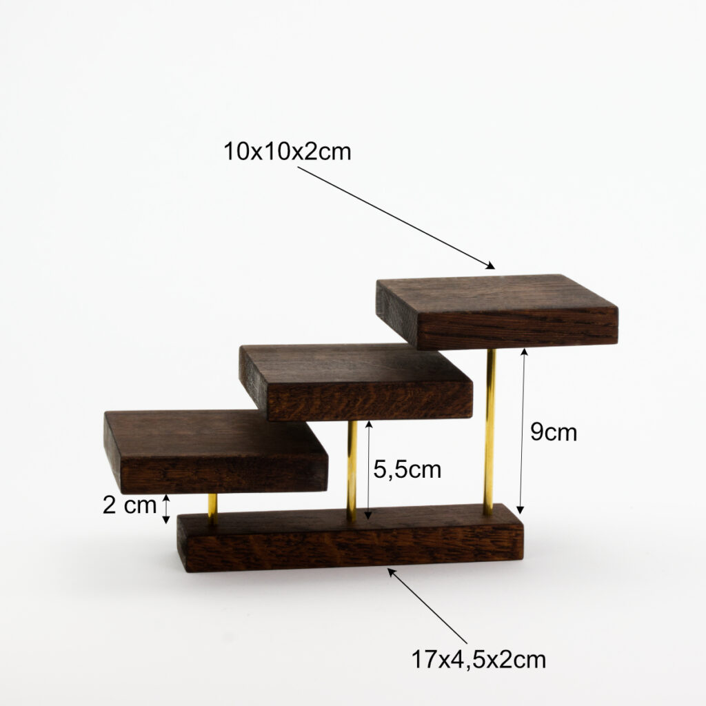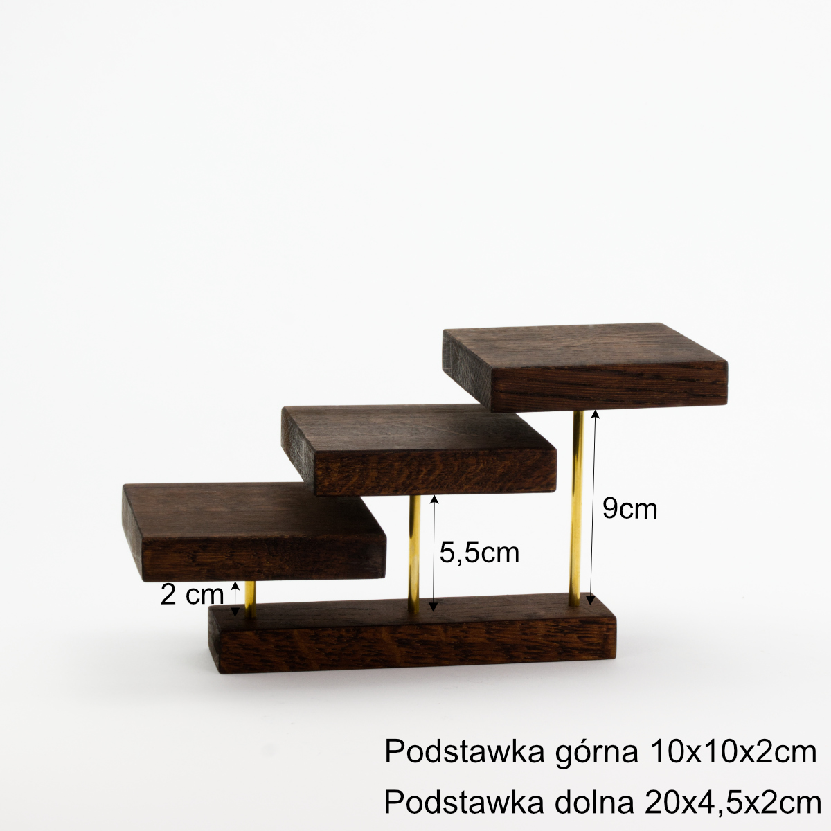 Podstawka na biżuterię, która łączy w sobie trzy wysokości sprawia, że ekspozycja zawsze będzie wyglądała efektownie. Starannie wyselekcjonowane drewno dębowe oraz mosiężne stelaże gwarantują wysoką odporność na uszkodzenia, oraz łatwość w utrzymaniu w czystości.
